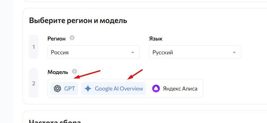 В AI Tracker анализ может проводиться с учётом конкретной модели, так как результаты по одному и тому же промту могут отличаться в зависимости от используемой версии AI.