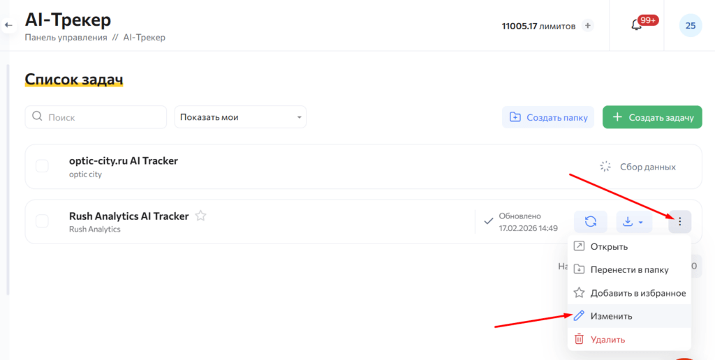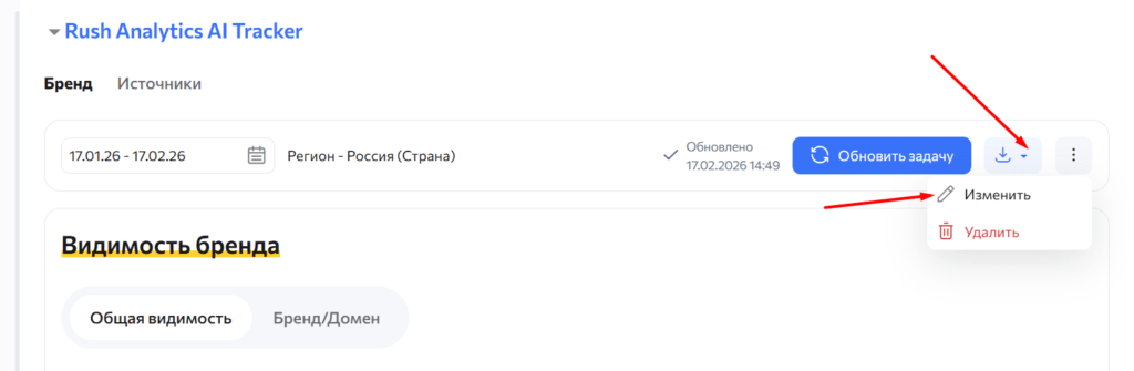 - Анализировать видимость по различным AI-платформам и сравнивать результаты.